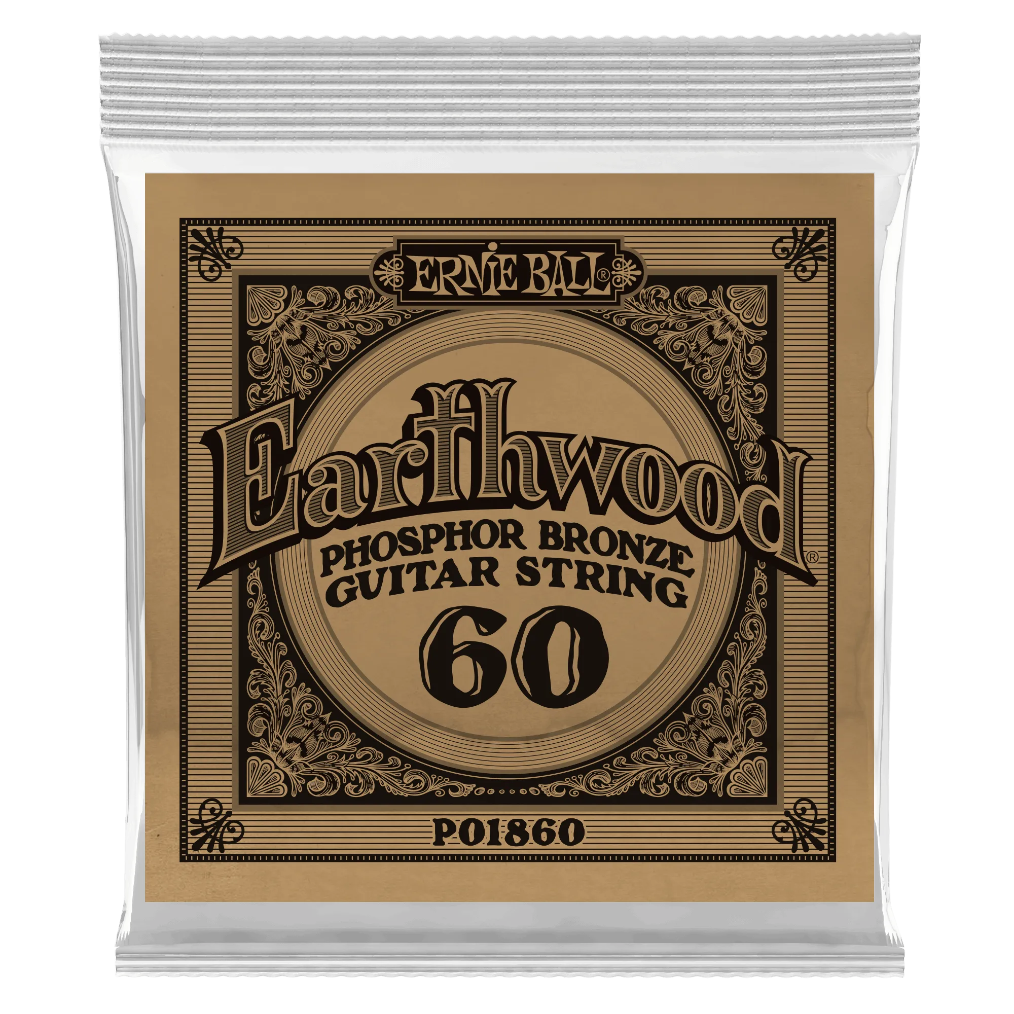 Ernie Ball 1860 струна одиночная для акустической гитары, Серия Earthwood, Калибр: 60, Сердцевина: шестигранник; сталь, покрытая латунью, Обмотка: