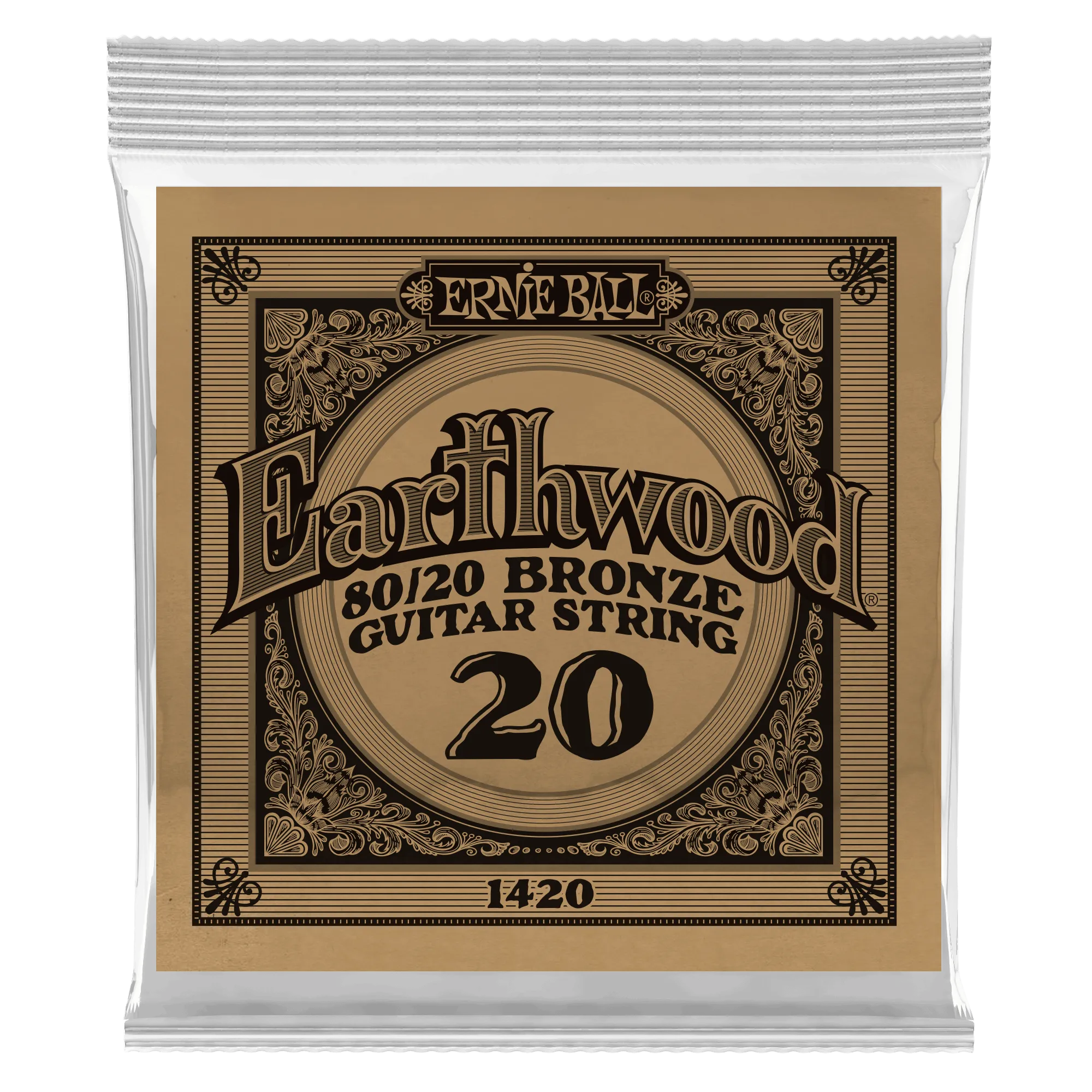Ernie Ball 1420 - струна одиночная для акустической гитары, Серия Earthwood, Калибр: 20, Сердцевина: шестигранник; сталь, покрытая латунью, Обмотка: