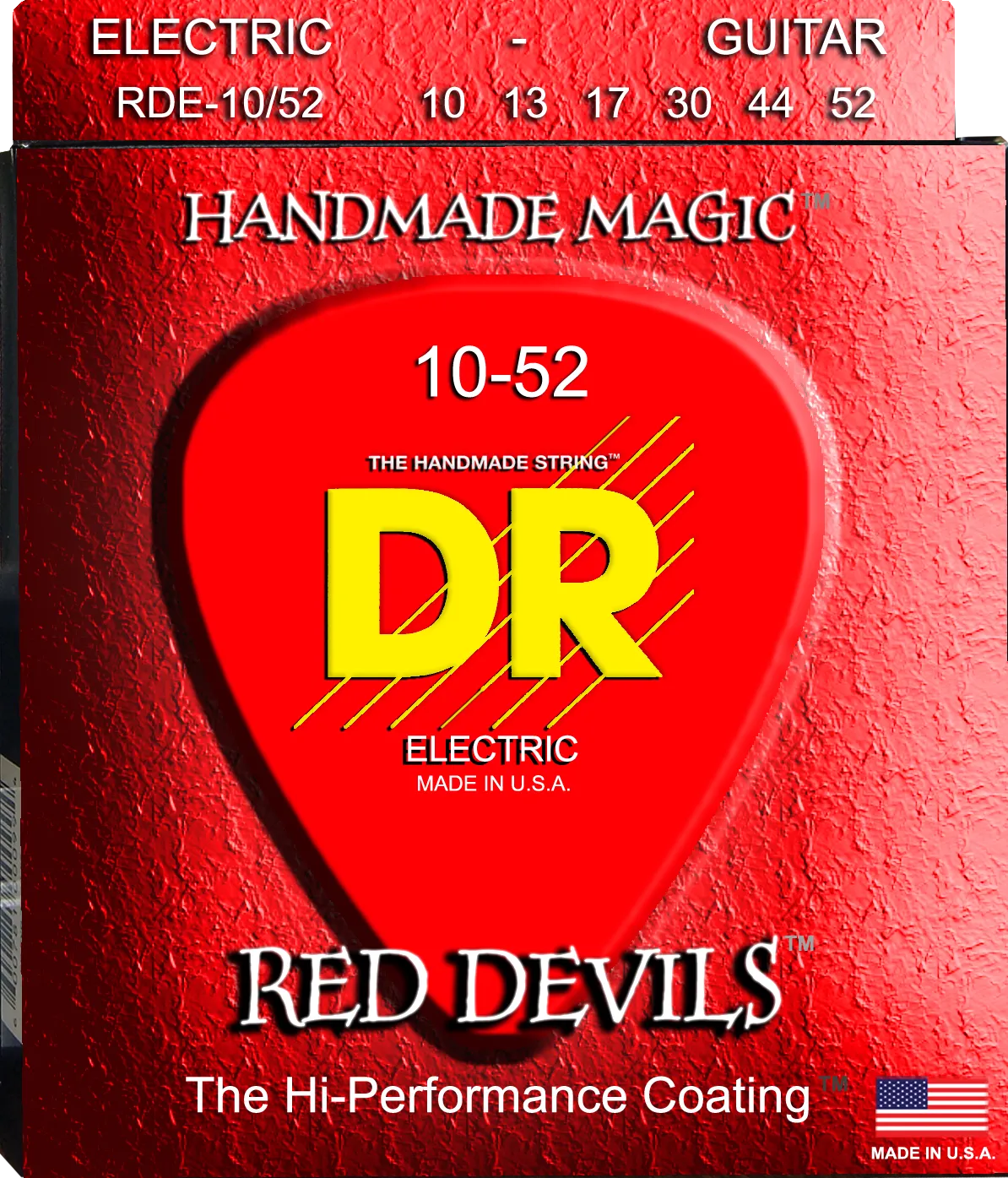 DR RDE-10/52 - струны для электрогитары, Калибр: 10-52, Серия: RED DEVILS™, Обмотка: посеребрёная/никелированая сталь, Покрытие: есть