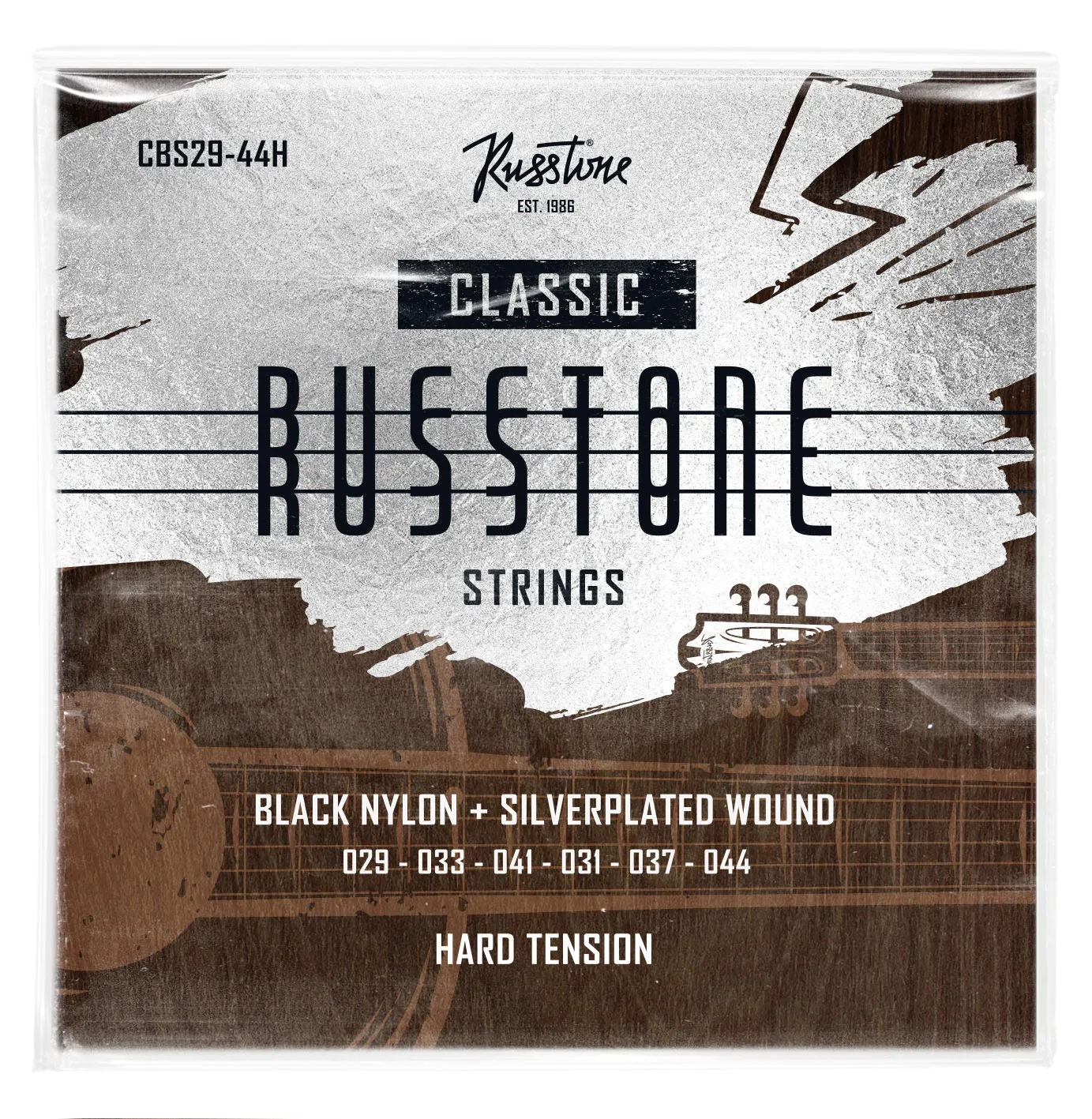 Russtone CBS29-44H - Струны для классической гитары, Серия: Black Nylon, Обмотка: посеребрённая, Натяжение: сильное, Калибр: 29-33-41-31-37-44.
