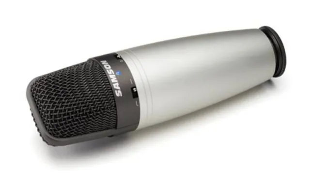 C03 студийный конденсат. микрофон, суперкардиоида, 40-18000 Гц, макс SPL 142 dB, динамический диапазон 119dB, 350 Ом, вес 460 грамм. Samson