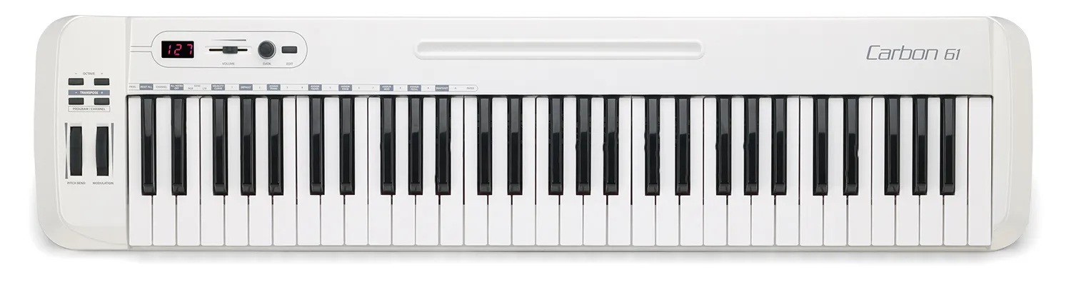 CARBON 61 USB/MIDI-клавиатура, 61 чувствительная к скорости нажатия клавиша, 2 колеса (модуляция и питч), назначаемый энкодер и ползунок громкости. iPad/PC/Mac совместимость. вес 6,1 кг SAMSON
