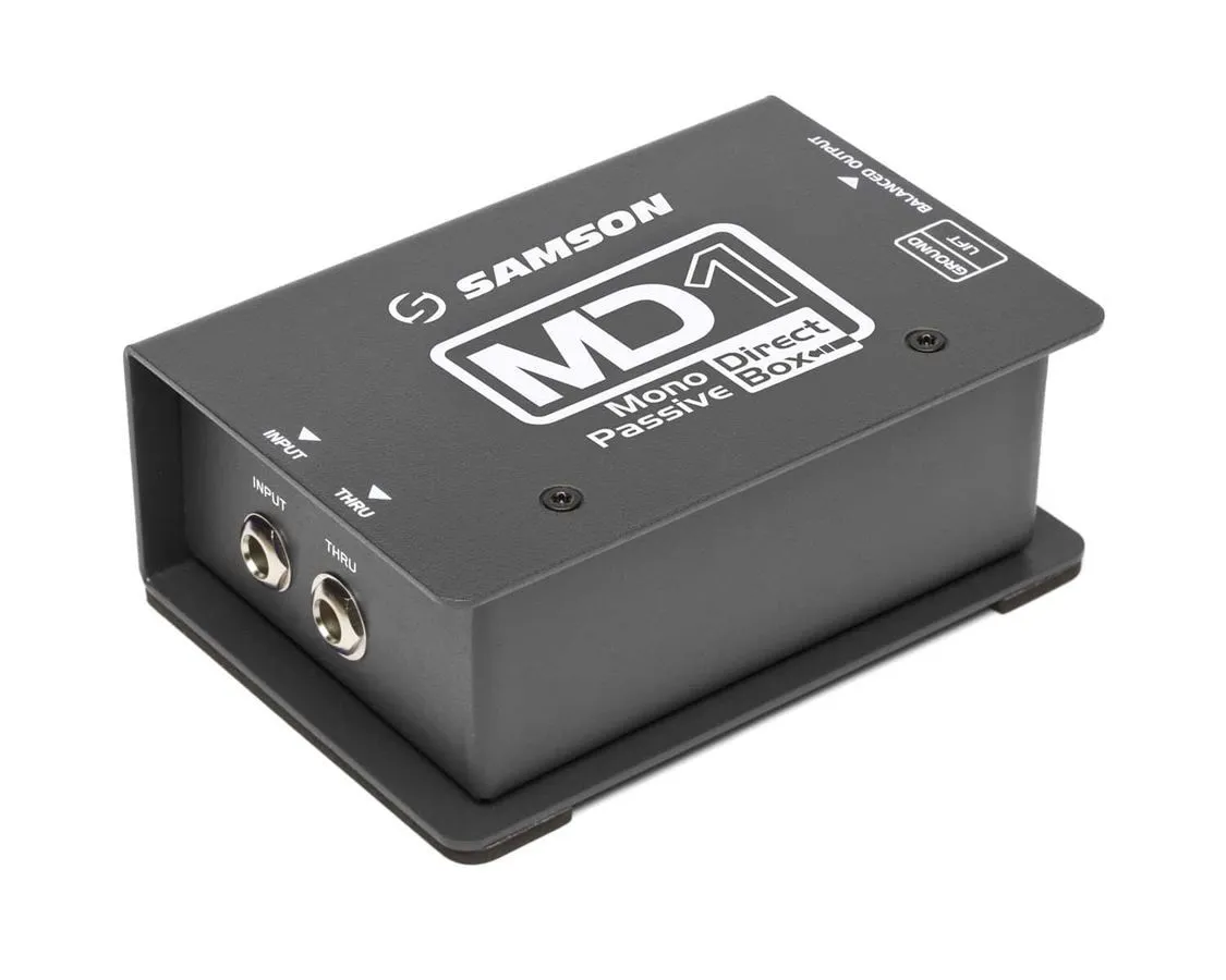 S-Max MDA1 активный моно директ-бокс, 18Гц – 35кГц, вход./выход. импеданс 1Мом/200Ом, переключатели 0dB/-15dB, ground/lift, питание 9В бат./48В фантом, вход 1/4” Jack, выход XLR, сквоз.выход 1/4” Jack