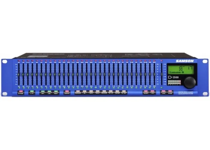 D2500 графический цифровой эквалайзер 2-х канальный 31-полосный, задержка, гейт, лимитер, 24 bit/96 kHz, подавитель обратной связи, 482х267х89 мм, вес 2,77 кг, Samson