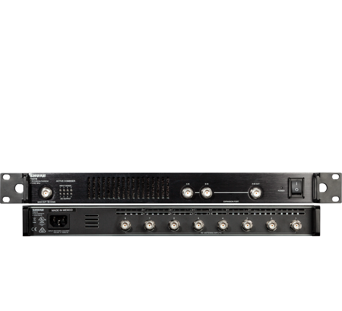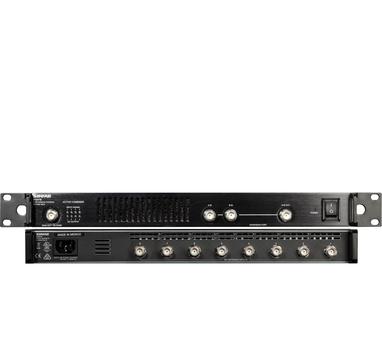 SHURE PA821B-E Восьмиканальный антенный комбайнер, диапазон 470-865 МГц, 1 РЧ-выход BNC 50 Ом, 8 РЧ-входов BNC 50 Ом, встроенный двухканальный пассивный комбайнер