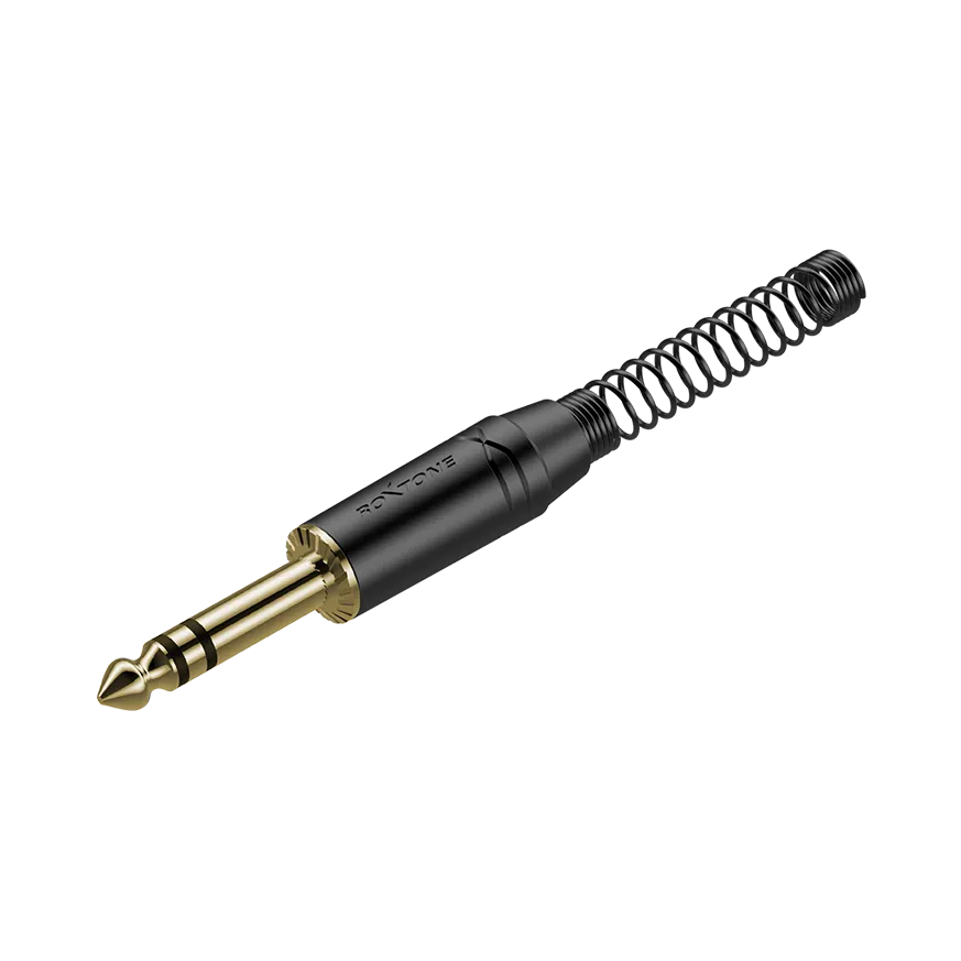 ROXTONE RJ3PP-BG Разъем jack 1/4" стерео с пружиной, размер 118,4*14мм, диаметр кабеля с пружиной 7мм, без пружины: 8,5mm, Цвет: черный, поставляется в индивидуальном блистере, по 20 блистеров в коробке, по 20 коробок в упаковке. всего 400штук в упаковк