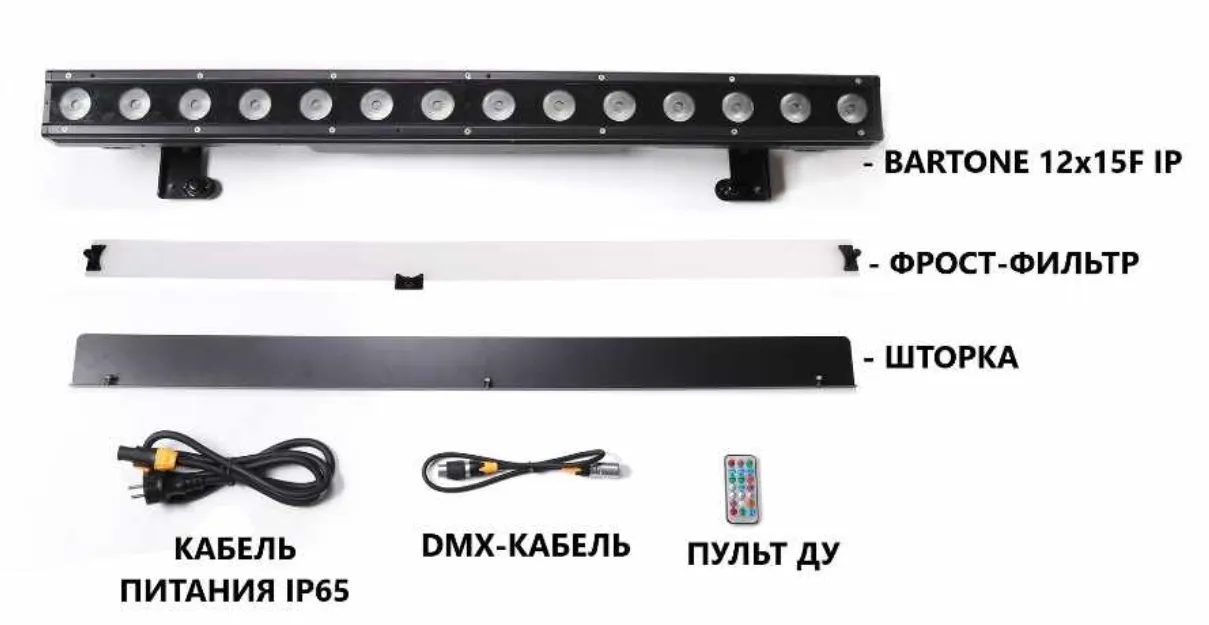 STAGE4 BARTONE 12x15F IP (v.2) Архитектурный LED светильник, источник света - 12*15 Вт 4-в-1 RGBW LED, линза 10°х45°/8°/25°/40°, DMX-512 – 3, 7, 11, 48, 52 кан., строб, диммер 0-100%, Master Slave/Auto, RDM, ИК-пульт, мощность 160 Вт, 110-230В,50/60 Гц, I