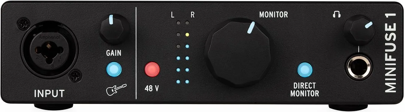 Arturia MiniFuse 1 Black - 1 x 2 USB-аудиоинтерфейс, 24бит 192 кГц, комбинированный разъем XLR и 6.3 мм для записи инструментов и вокала с фантомным питанием 48 В, выходы на монитор (L/R Jack), выход для наушников