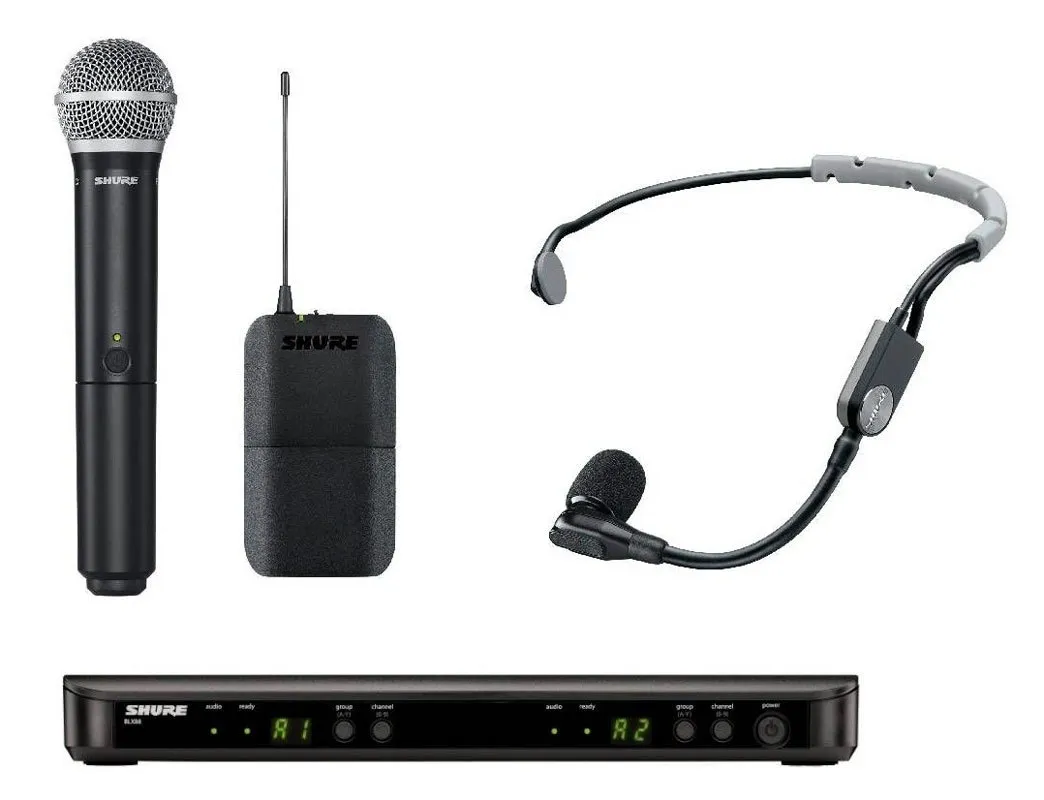 SHURE BLX1288E/SM35 K3E 606-630 MHz двухканальная радиосистема с головным микрофоном SM35 и ручным передатчиком SM58