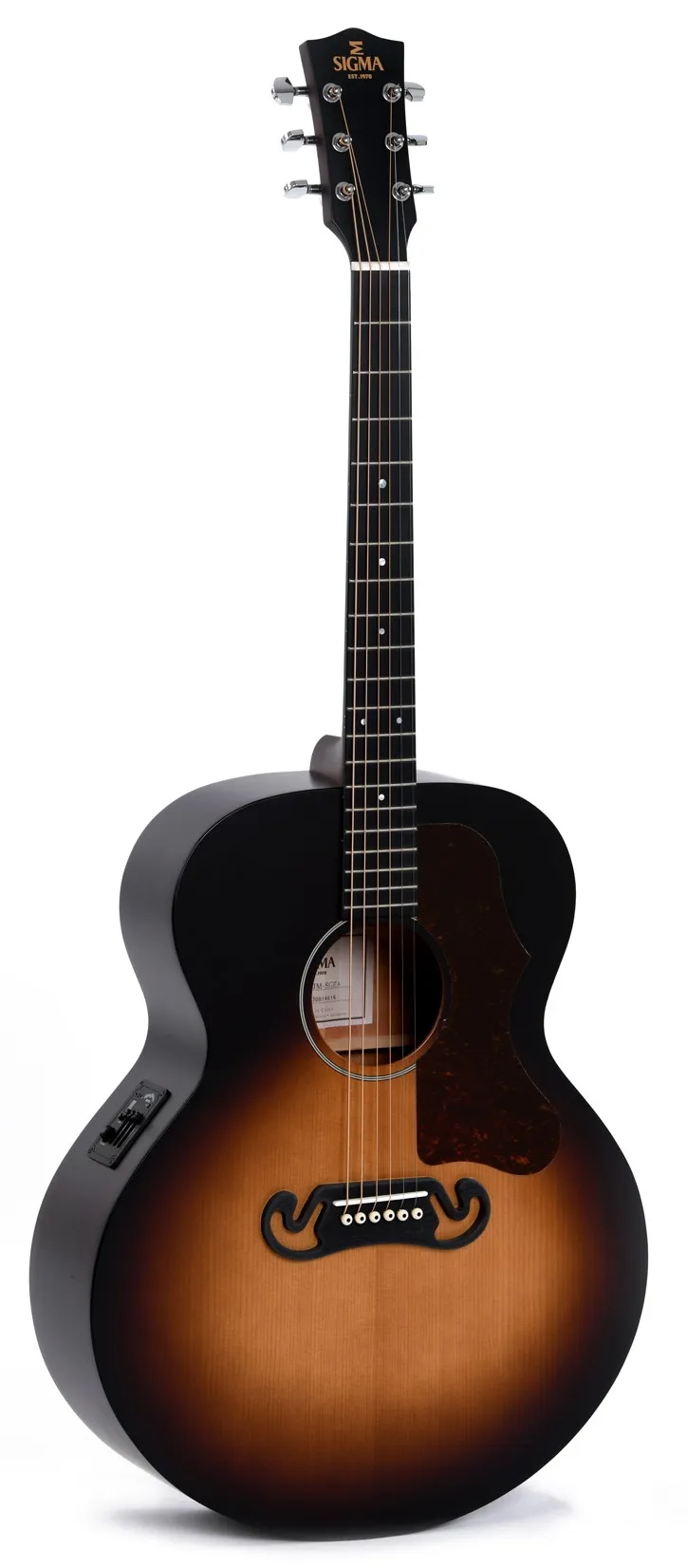 Гриф гитары изготавливается из красного дерева, накладка грифа из микарта, мензура - 25,4" (645 мм), ширина грифа - 42,9 мм. На верхнюю деку установлен защитный пикгард. Акустическая гитара оборудована звукоснимателем Sigma, с тембр-блоком, эквалайзером частот и тюнером, который даст возможность быстрой настройки гитары даже на шумной сцене. Гитары Sigma имеют прекрасную репутацию и премиальное звучание. Каждый инструмент в процессе создания проходит тщательный контроль качества, что обеспечивает превосходный конечный результат.