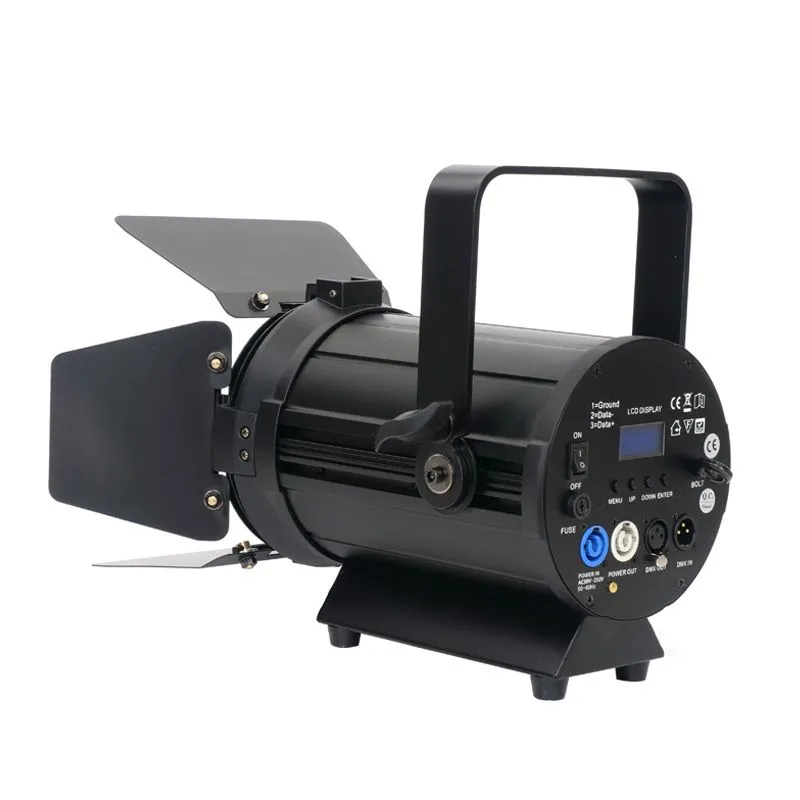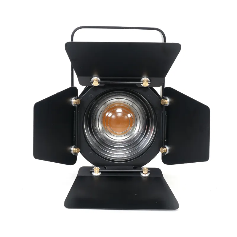 FC100-2 Прожектор FC100-2 Прожектор с линзой Френеля. Источник света двуцветный светодиод 100Вт (Cold White + Warm White), CRI>90. Потребление 100Вт. Зум ручной от 15 до 50 градусов. Управление по DMX 2/5 каналов. Охлаждение активное. Вес