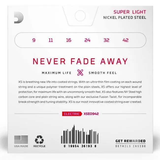 D'ADDARIO XSE0942 - струны для электрогитары, никелированная сталь, с покрытием