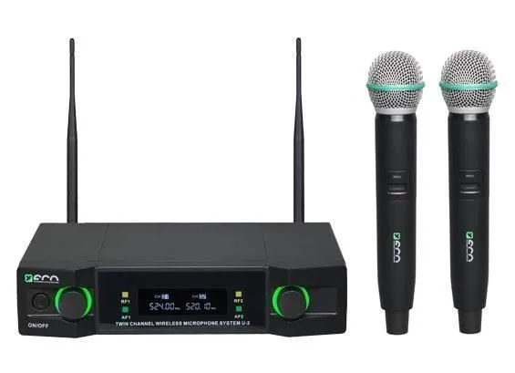 ECO by VOLTA U-2 (490.21/629.40) Микрофонная радиосистема начального уровня с двумя ручными динамическими микрофонами UHF диапазона с фиксированной частотой. True Diversity, Plug&play., 1pcs in box: 423x337x70 mm, 10 pcs in box: 435x370x354 mm, receiver s