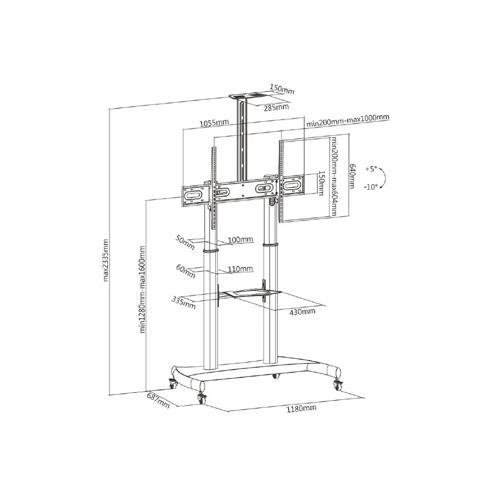 Мобильная стойка для панели 60"-100" FIX TTL06-610TW до 100 кг. (black)