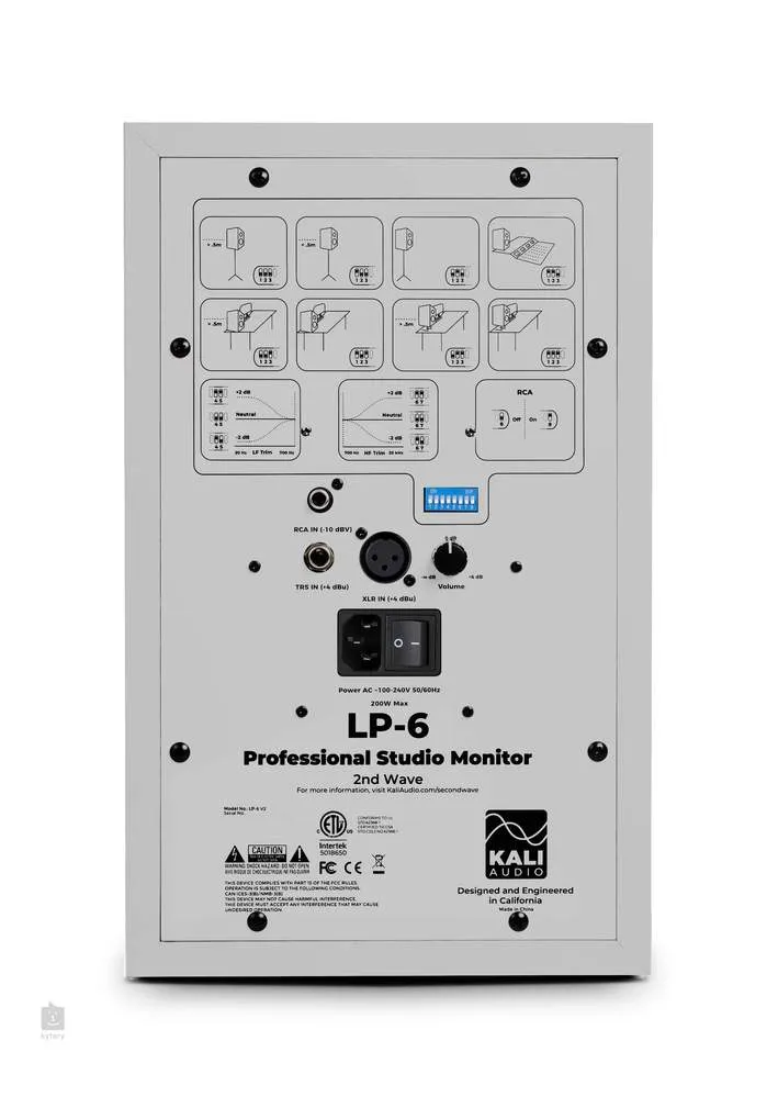 KALI AUDIO LP-6W V2 - Студийный монитор (2я волна) 6.5" + 1", 40 Вт + 40 Вт, усилитель класса D, 39 - 25.000 Hz, макс. SPL: 115 дБ, эквалайзер, разъемы: XLR и 1/4" балансный и небалансный RCA, 359 x 222 x 260 мм, 7 кг, цвет белый