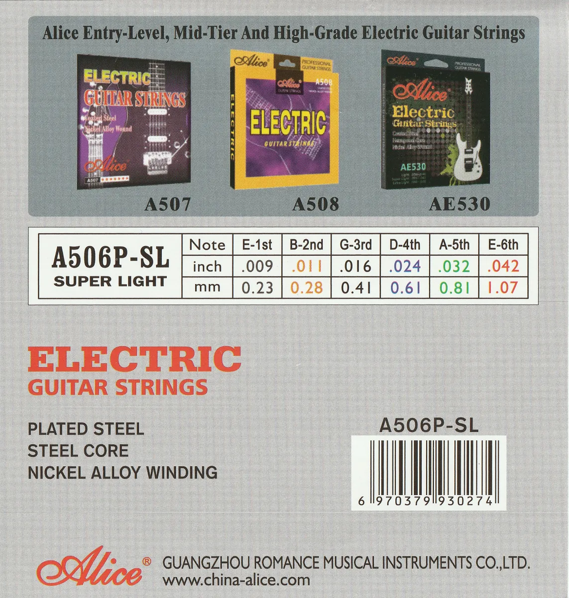 A506P-SL Комплект струн для электрогитары, никель, 9-42 Alice