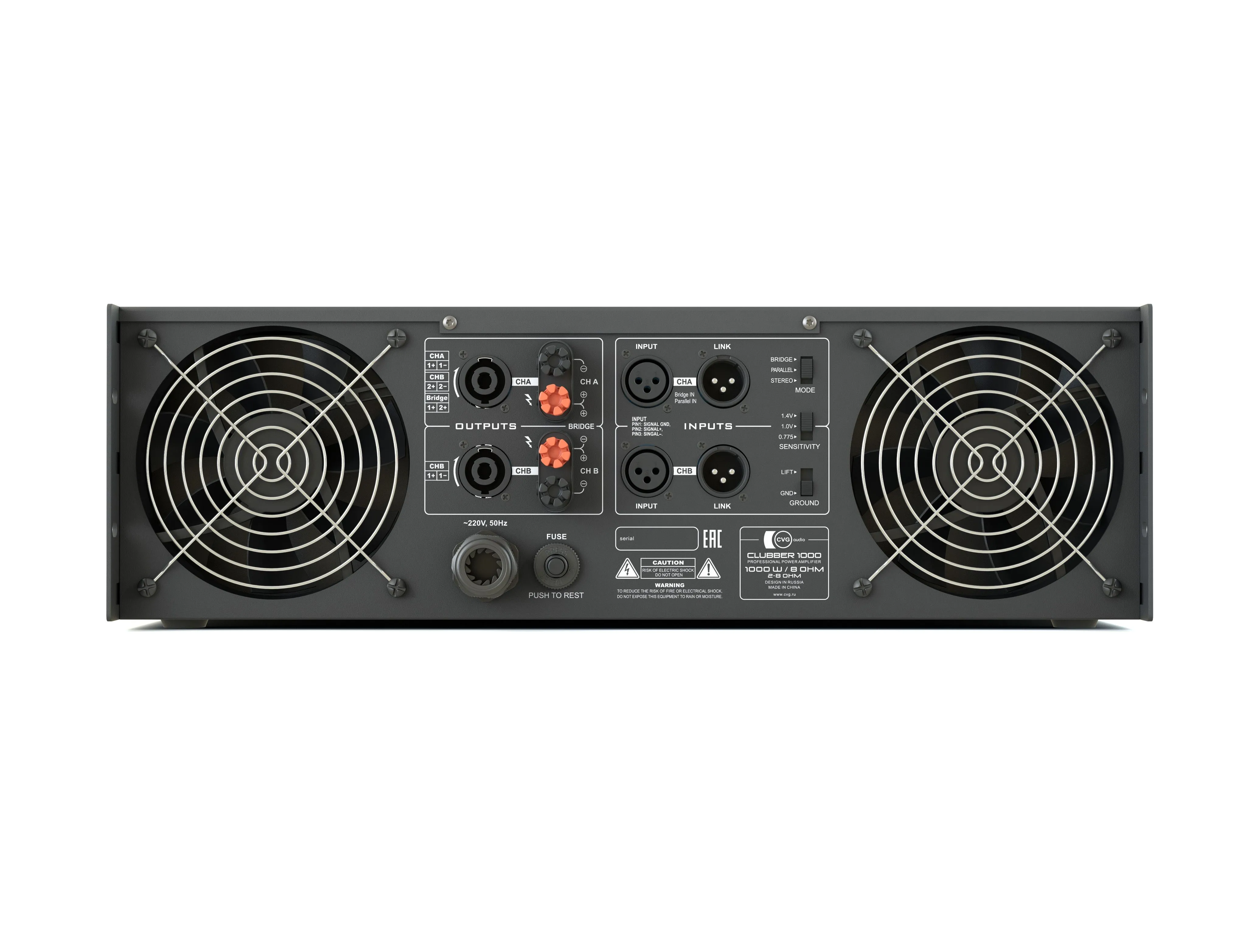 CVGAUDIO Clubber-1000 - Профессиональный низкоомный двухканальный усилитель мощности, 2 XLR балансных входа, 2 XLR Link out, 4-8ohm, STEREO/PARALLEL: 4ohm - 1500W x 2 / 8ohm - 1000W x 2, BRIDGE: 8ohm - 2500W, 3U