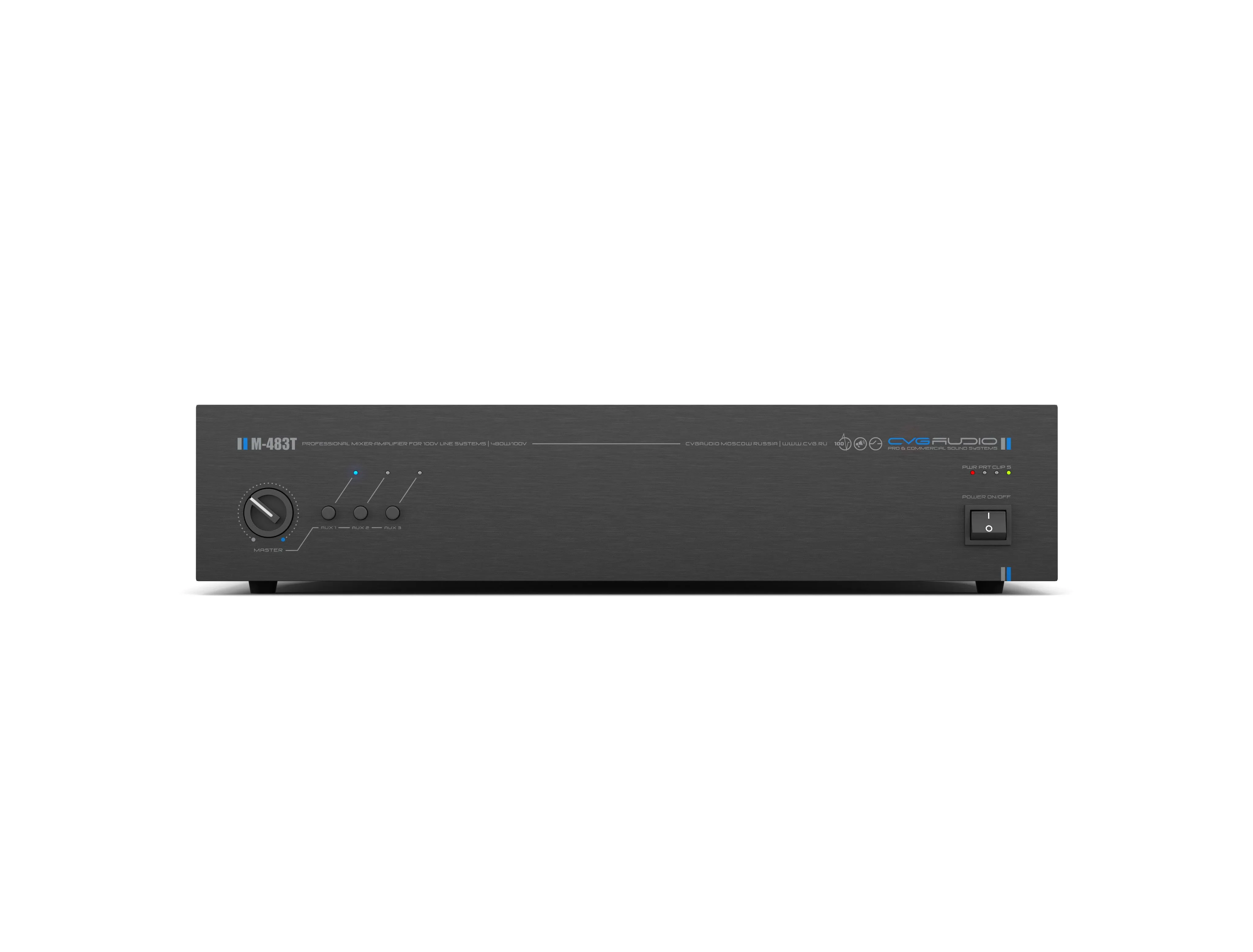 CVGAUDIO M-483T - Профессиональный микшер-усилитель, 480W/100V, 3 line in (3x2RCA), 2 mic/line in (XLR/TRS), настраиваемый приоритет, фантомное питание 24V, FULL MUTE, MUSIC MUTE, раздельный EQ для линейных и микрофонных входов, 2U