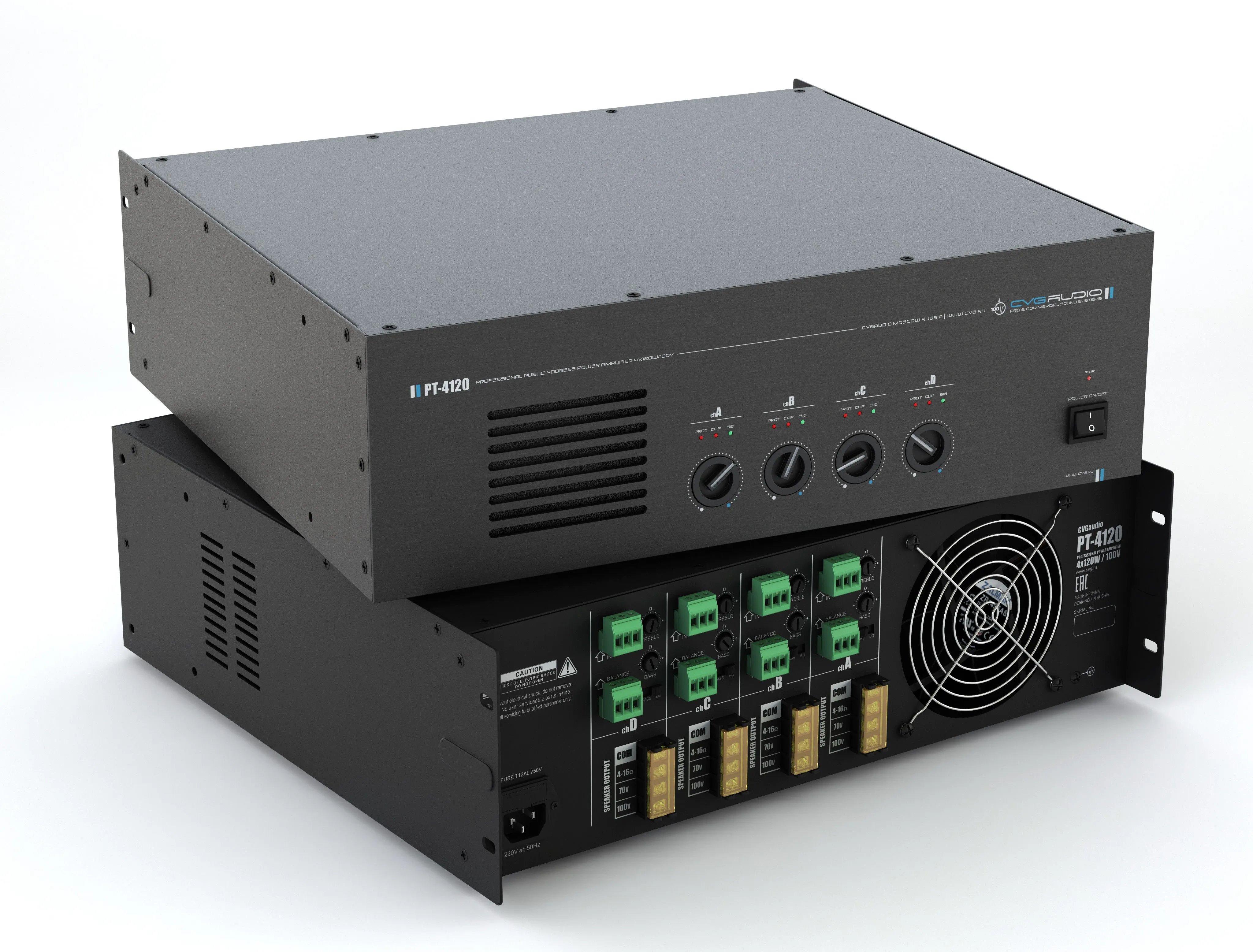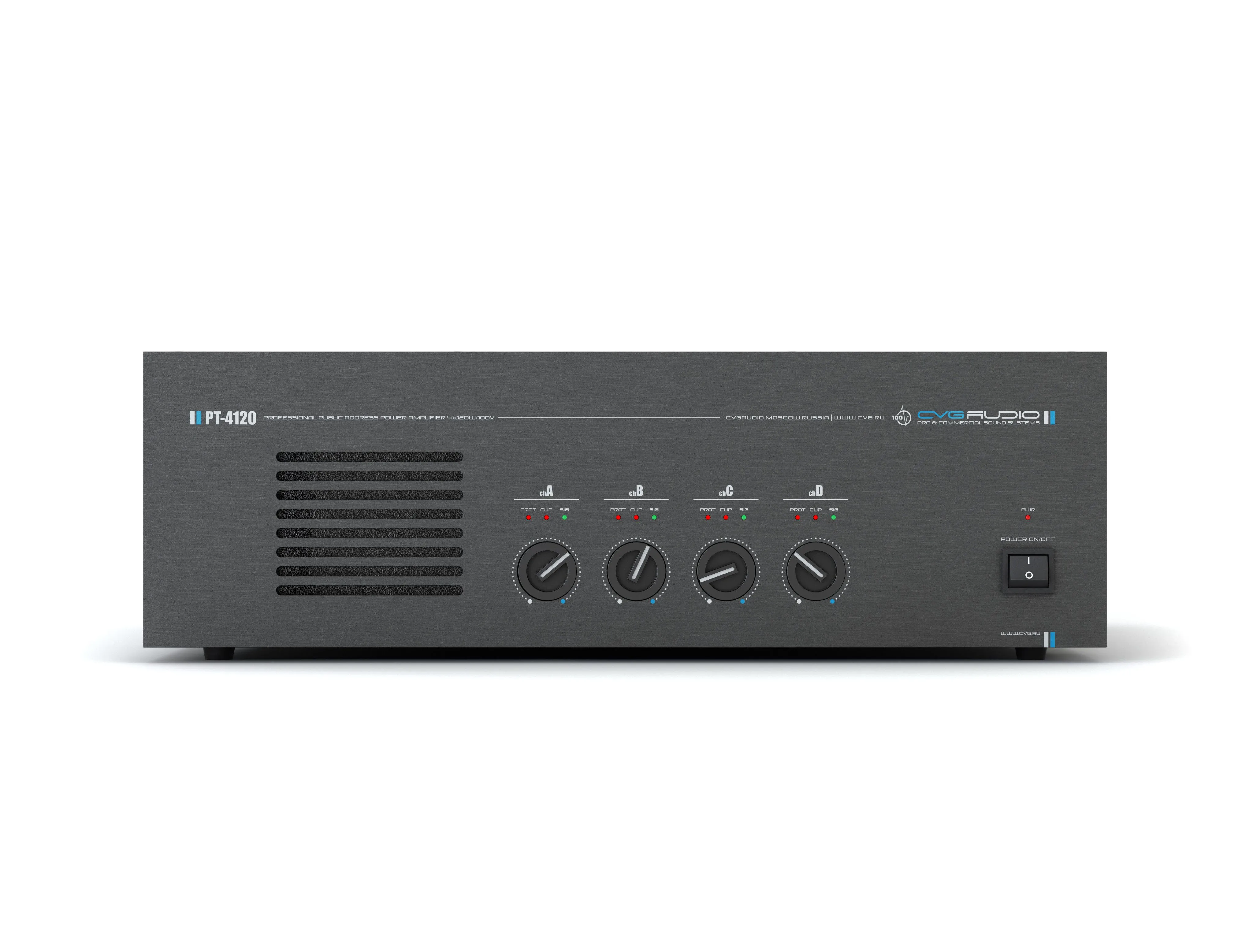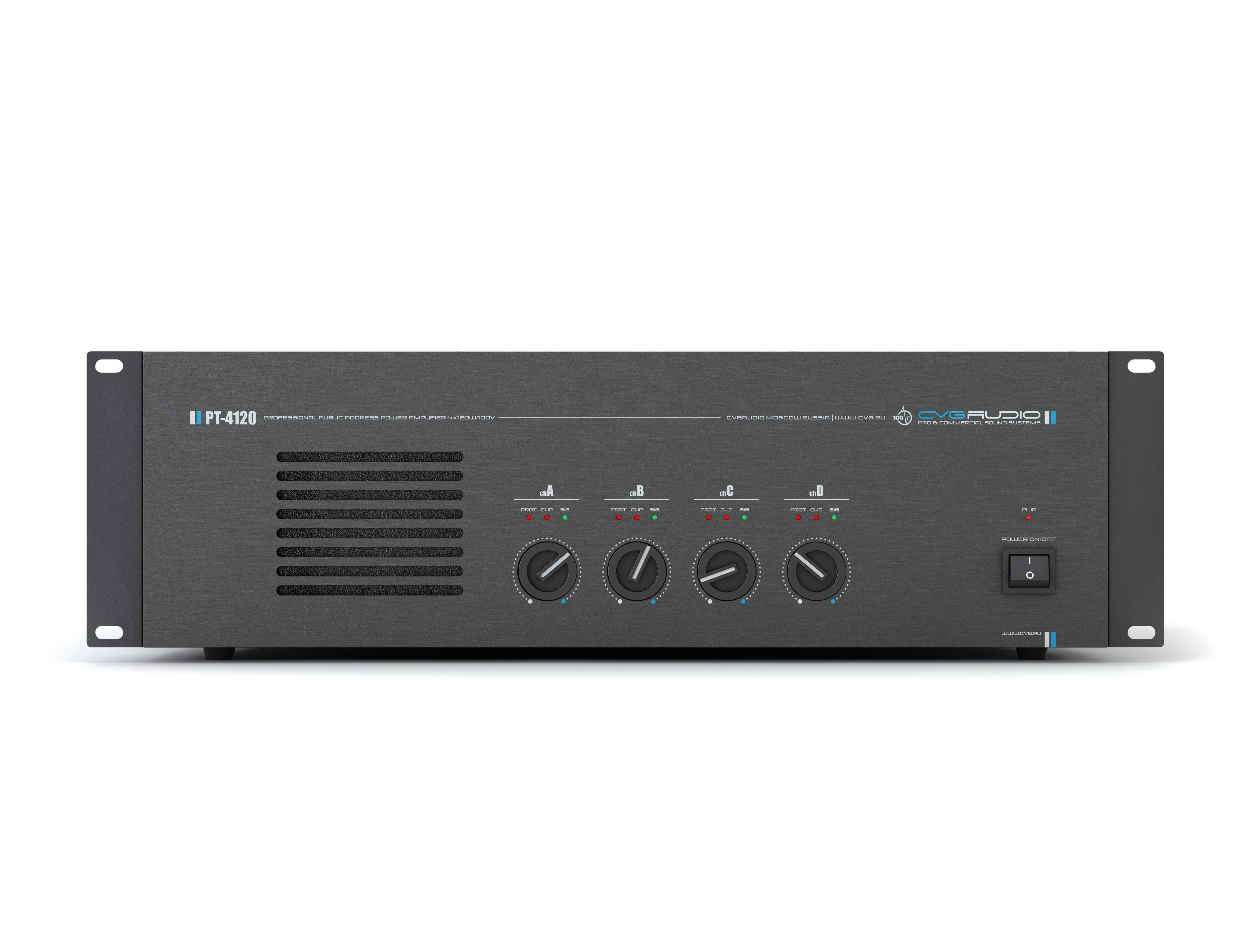 CVGAUDIO PT-4120 - Профессиональный четырехканальный высококачественный усилитель мощности для многозонных систем трансляции музыки и речевого оповещения, 4x120W / 100V, балансный Euro Block вход, линкующий балансный Euro Block выход раздельно для каждого