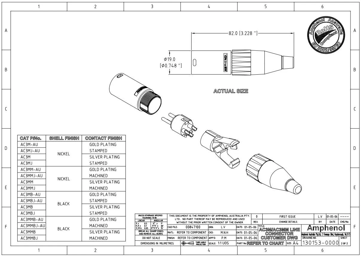 Amphenol AC3MM 3-контактный кабельный коннектор, XLR male