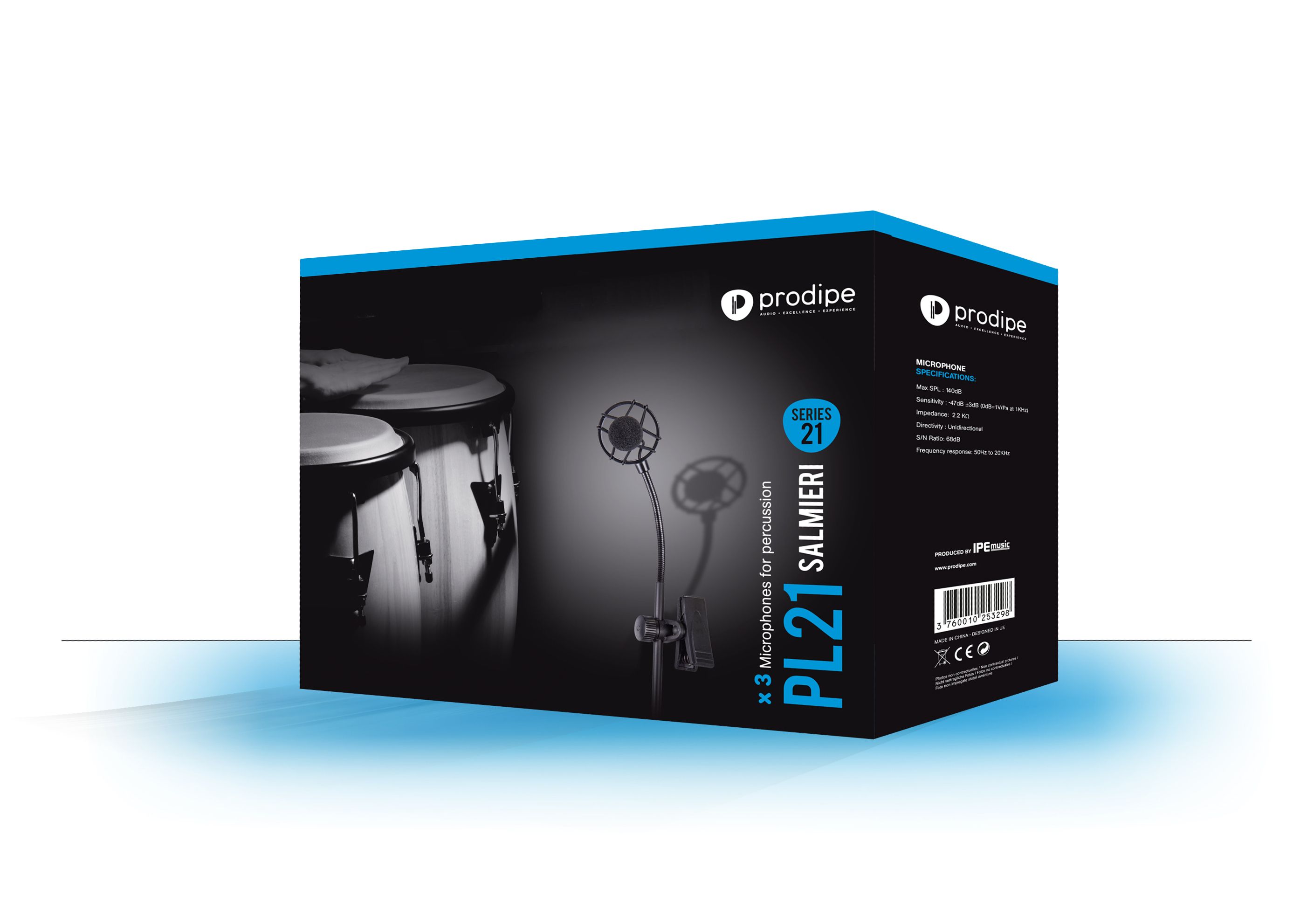 PROPL21 PL21 Salmieri Комплект микрофонов для перкуссии, Prodipe. Комплект микрофонов для любого типа перкуссионных инструментов. Три микрофона с кардиоидной диаграммой направленности. Три зажима, три адаптера. Совершенно новая линейка инструментальных микрофонных систем для записи всех ваших перкуссионных инструментов. Комплект микрофонов PL21 Salmieri для конги, бонго, джембе, кахона, тимбалес, рототама, тамбурина, табла, бат, дарбуки, бендира, бойрана, малого и том-барабана, тамбора, сурду, уду, стального барабана и многих других инструментов. Prodipe усовершенствовали электретный капсюль, который может обрабатывать до 140 дБ звукового давления. При таком уровне давления капсюль полностью передаст все гармоники и теплоту звучания вашего инструмента. Зажимы и переходник XLR поставляются для проводного микрофона (требуется фантомное питание 48 В). Микрофон также можно преобразовать в УВЧ-микрофон, подключив его к системам Prodipe UHF B210 SOLO или UHF B210 DUO (специально адаптированным для импеданса капсюля Lanen 21). Превосходный естественный звук. Очень высокий уровень звукового давления (140 дБ). Совместимость с UHF (с системами Prodipe UHF B210 SOLO или UHF B210 DUO - продаются отдельно). Гибкая "гусиная шея" для быстрого и простого монтажа. Очень высокий уровень защиты от вибрации инструмента. Переходник с разъема Mini XLR на XLR обеспечивает правильное расположение микрофонного провода на вашем инструменте (для проводного подключения требуется фантомное питание 48 В). Тип микрофона: конденсаторный. Диаграмма направленности: кардиоида. Импеданс: выход: 2,2 кОм. Чувствительность: -47 дБ ± 3 дБ (0 дБ = 1 В / Па при 1 кГц). Длина кабеля: прибл. 1,5 м. Максимальный уровень звукового давления: 140 дБ. Соотношение сигнал/шум: 68 дБ. Частотный диапазон: 50 Гц - 20 кГц.Характеристики