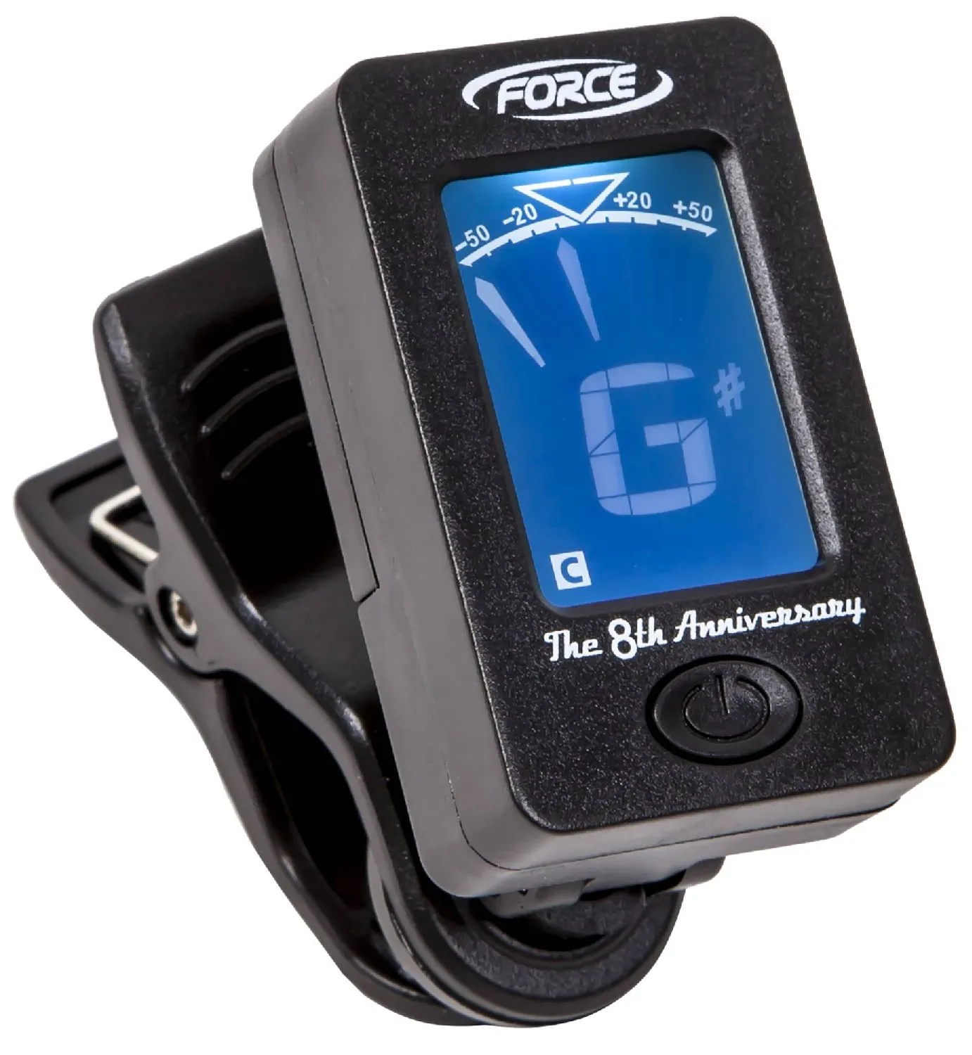 FORCE T-01 - тюнер для настройки гитары, бас-гитары, скрипки и укулеле. На клипсе с подсветкой и большим хорошо читаемым дисплеем