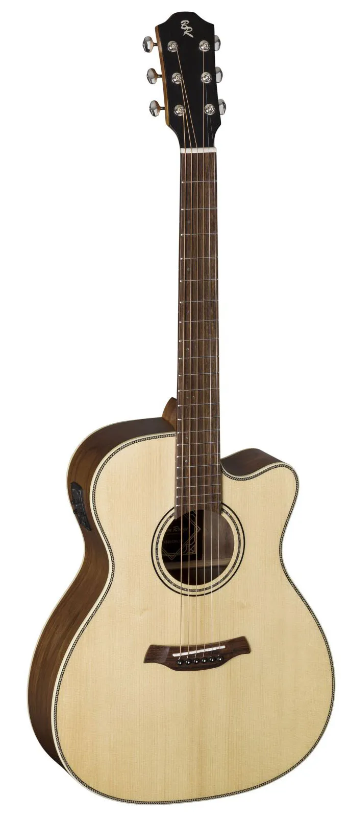 BATON ROUGE X34S/OMCE - электроакустическая гитара, 21 лад, верхняя дека: массив ели, задняя дека и обечайка: орех, гриф: окоуме, накладка и бридж: лавр, звукосниматель: BR-1, цвет: natural gloss top - satin b&s