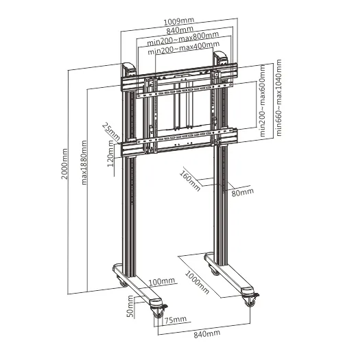 Мобильная стойка FIX TTF09H-90FW для панели 70"-90"до 90 кг.(silver)