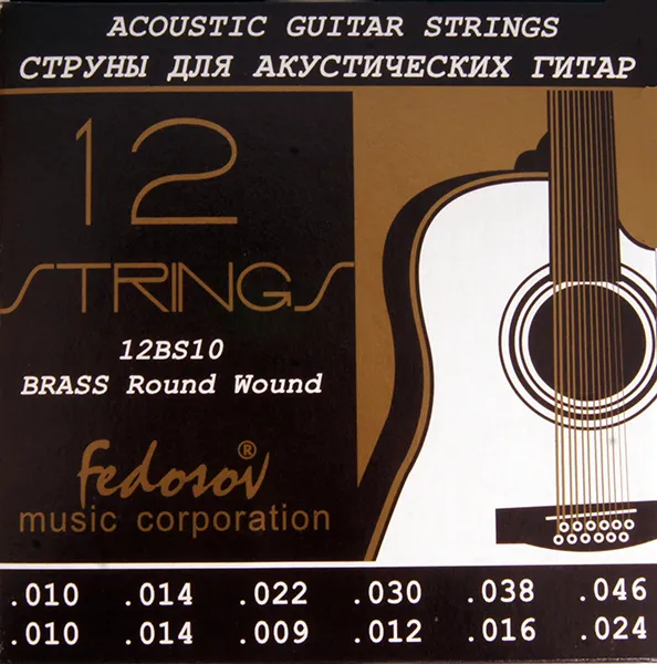 12BS10 Brass Round Wound Комплект струн для 12-струнной акустической гитары, латунь, 10-46, Fedosov - это набор струн, который идеально подходит для 12-струнной акустической гитары. Он производится с использованием латуни, что обеспечивает яркий и насыщенный звук. Комплект включает в себя струны диаметром 10-46.
