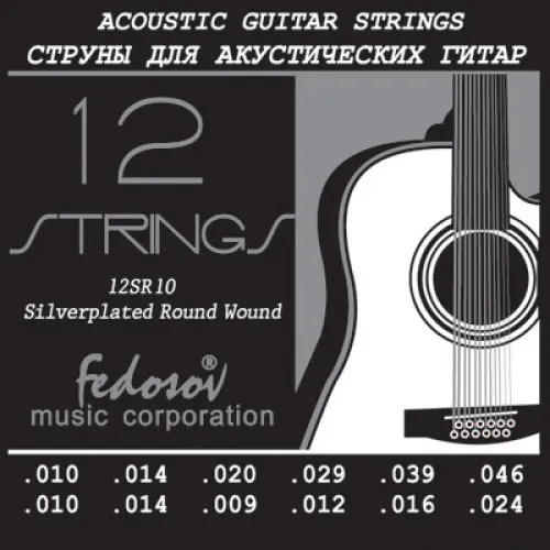 12SR10 Комплект струн для 12-струнной акустической гитары, посеребренная медь, 10-50, Fedosov