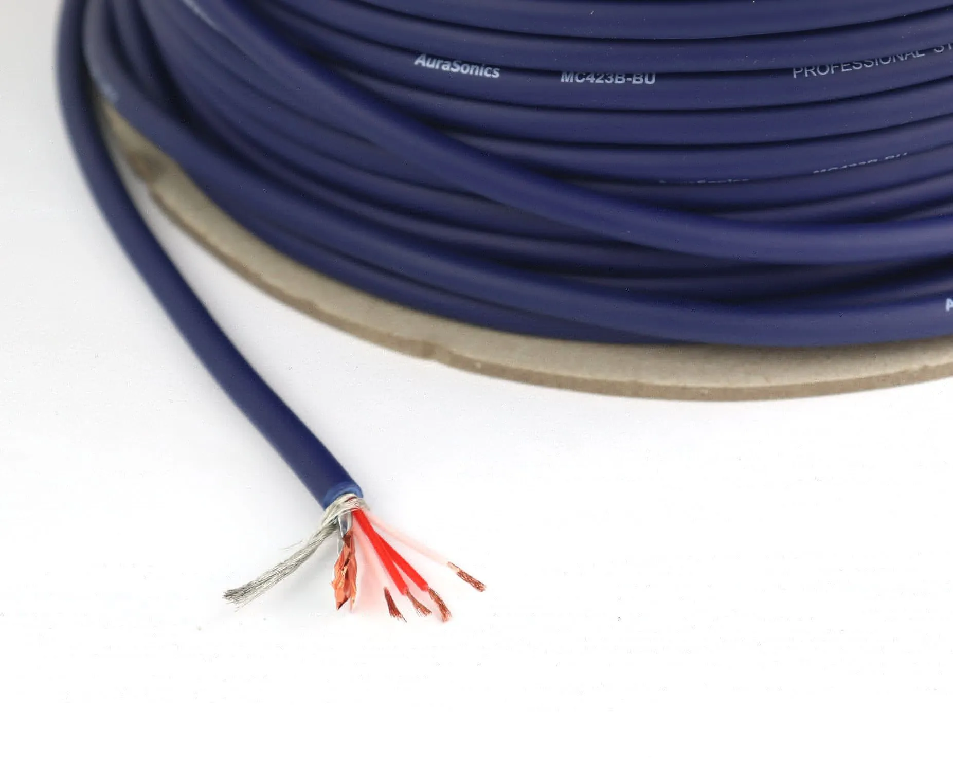 AuraSonics MC423B-BU микрофонный кабель starquad, плетеный экран, Ø6.5мм, синий, бухта 100м