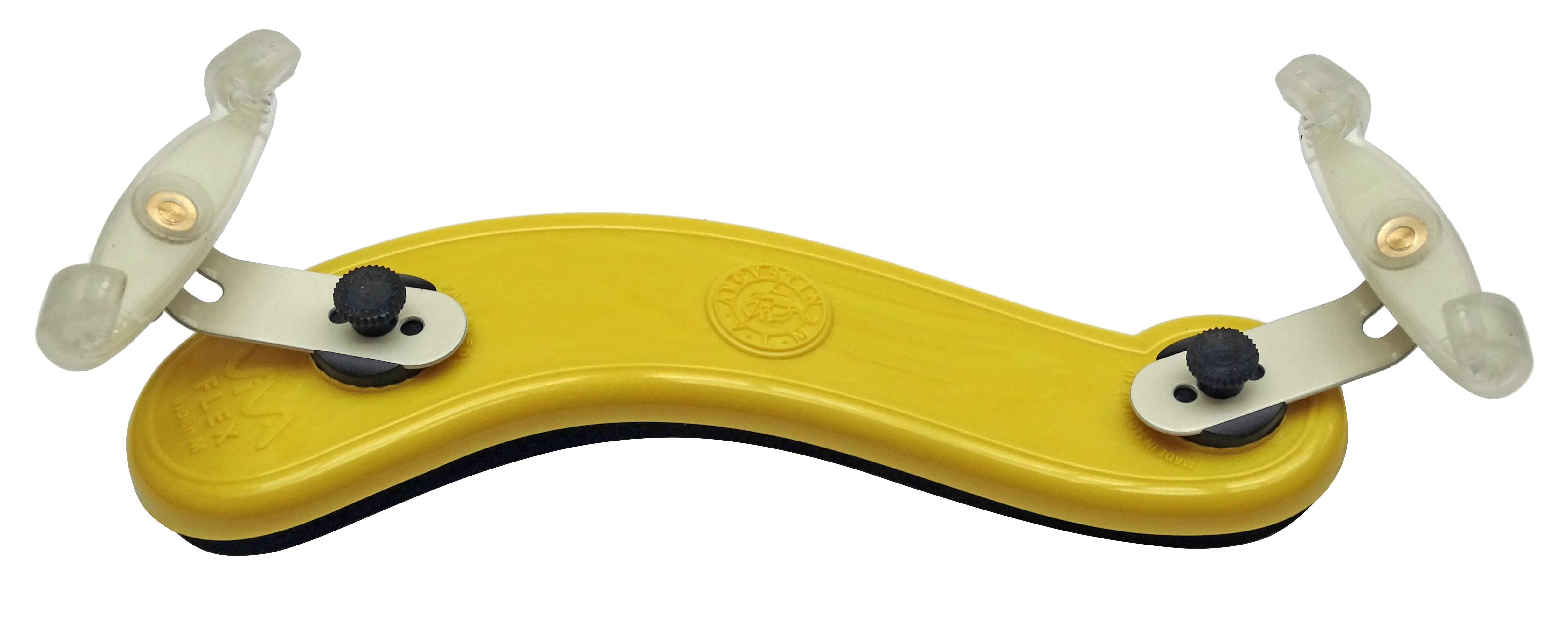 0 violin shoulder rest Viva Flex 80FMP6 - 1/4-1/2 violin shoulder rest with comfortable transparent shoulder support, with foldable white forks and swivel end members. Yellow
