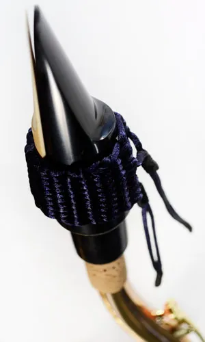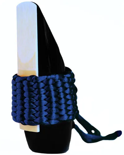 - Фиксация двумя шнурами с плетеным кольцом позволяет легко отрегулировать диаметр лигатуры под мундштук или изменить силу прижима