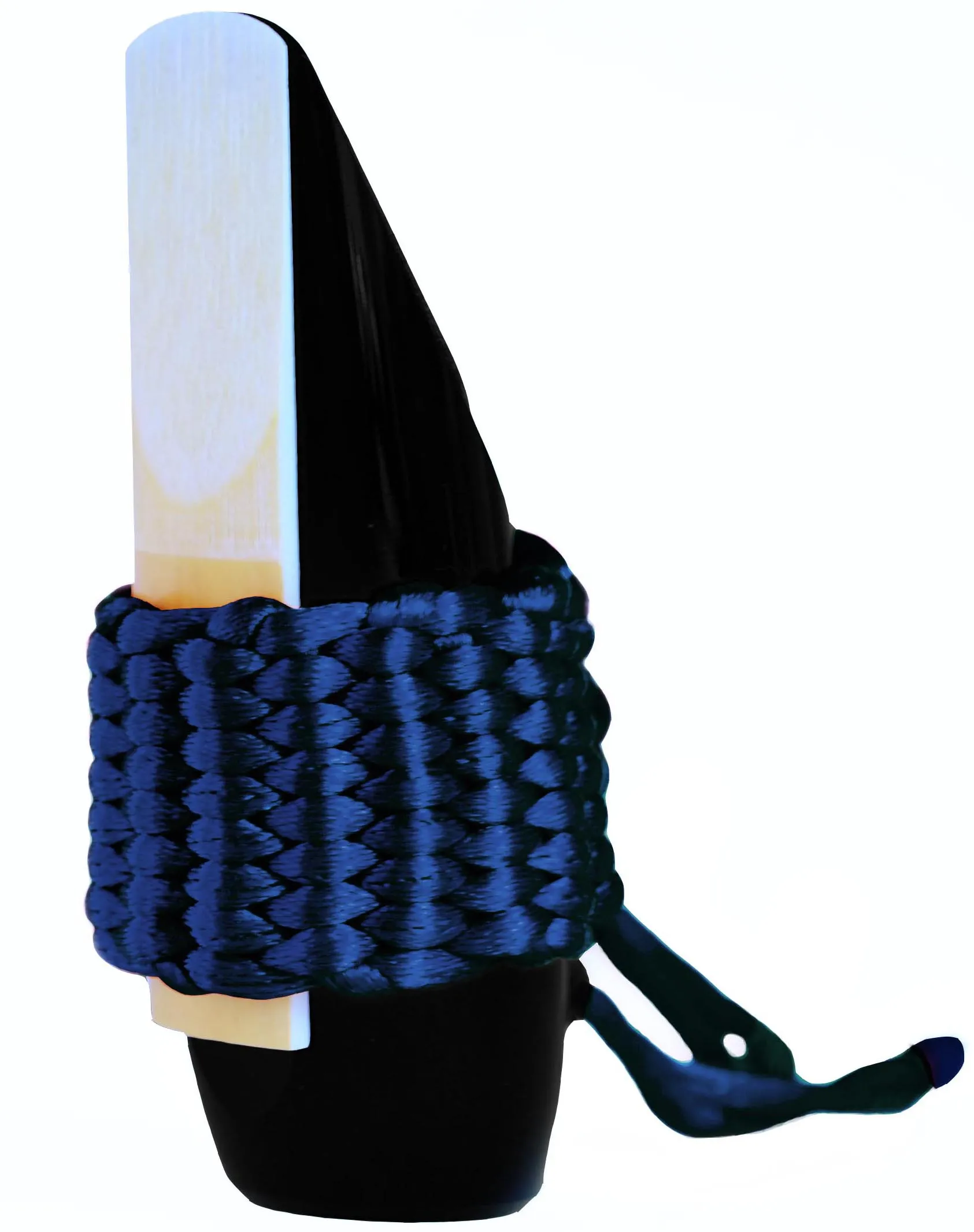 Soprano saxophone ligature Bambu AS04 - Плетеная лигатура с двумя шнурами-стяжками для саксофона сопрано. Цвет морской синий