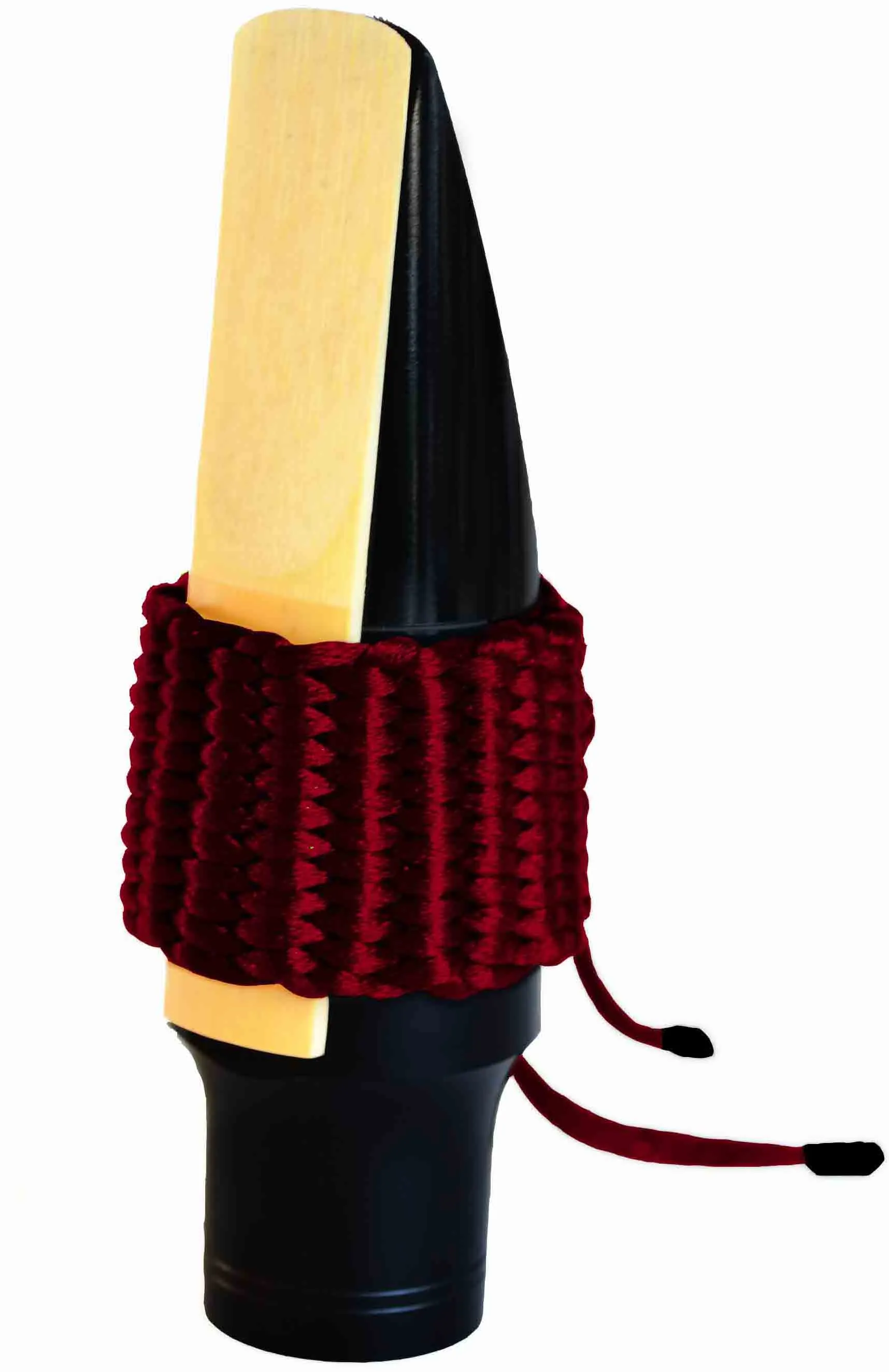 - Фиксация двумя шнурами с плетеным кольцом позволяет легко отрегулировать диаметр лигатуры под мундштук или изменить силу прижима