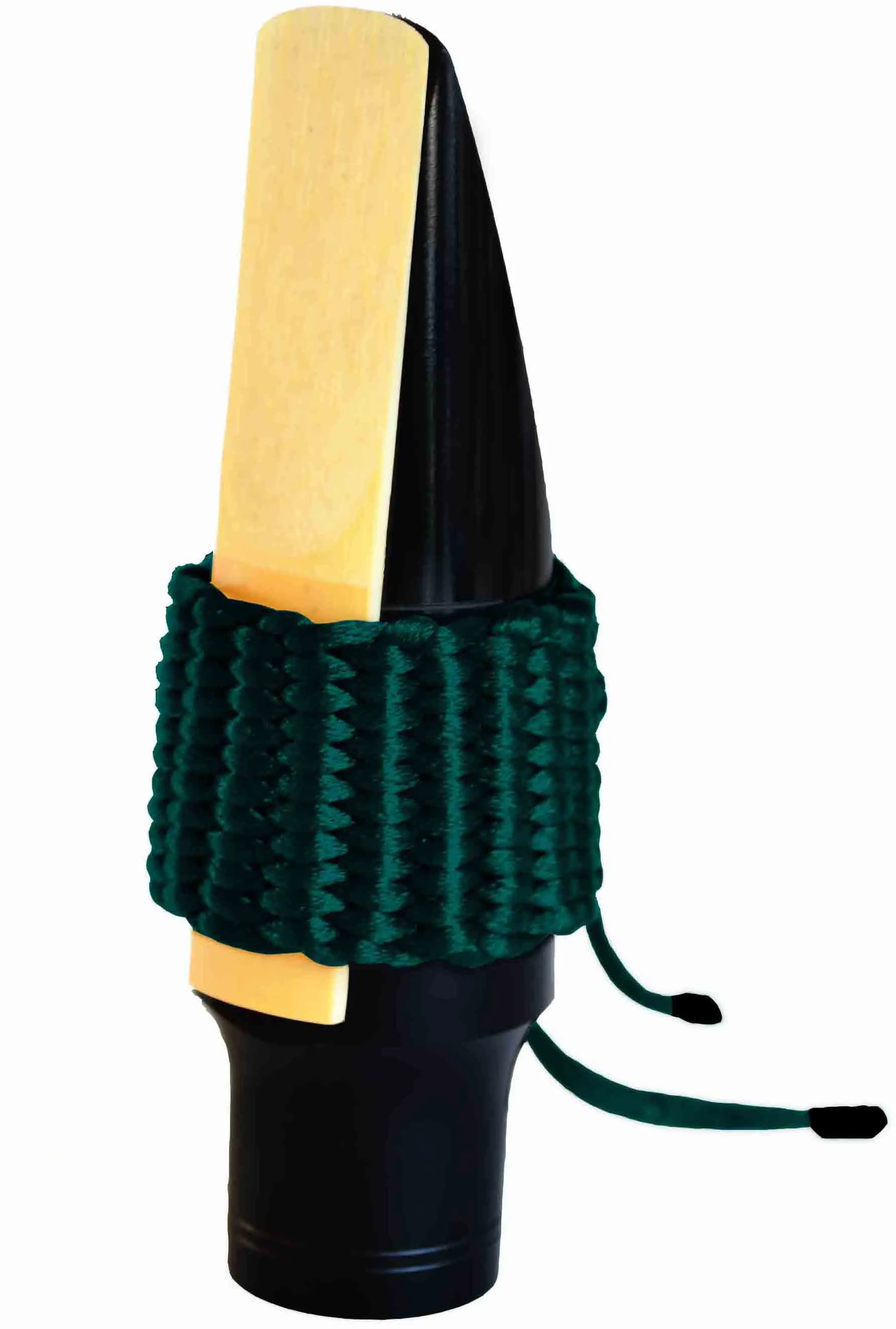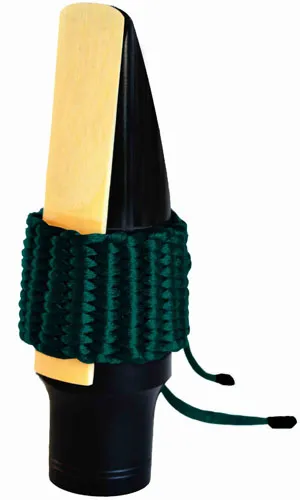 - Фиксация двумя шнурами с плетеным кольцом позволяет легко отрегулировать диаметр лигатуры под мундштук или изменить силу прижима