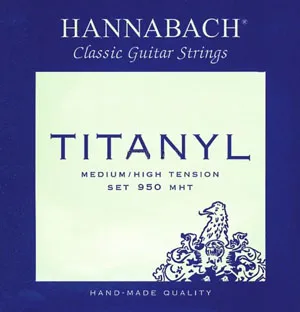 Classical guitar string set Hannabach Titanyl E950MHT - Polyamide trebles according to a new recipe. Bass with powerful, flexible nylon core and durable silver alloy winding. Medium-hard tension