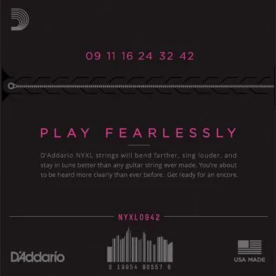 Electric guitar string set D'Addario NYXL0942 - Electric guitar strings with NY steel tops and nickel-plated steel wound basses. Extra light tension, thickness .009-.042 inch