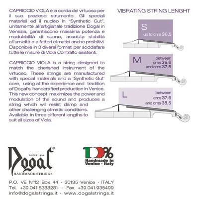 Viola string set Dogal Capriccio T161SL - Wound synthetic strings with intense and powerful "Italian" sound for viola with 37.6-38.5 cm scale