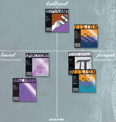 14-15.3' viola string set Thomastik Vision VI200 - Wound synthetic strings with powerful tone and good balance for viola with 37-39 cm scale.