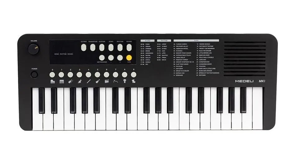 Medeli mk1 bk синтезатор, 37 клавиш, 32 полифония, 100 тембров, 100 стилей, вес 1,05 кг