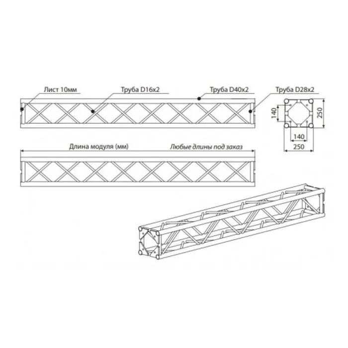 ИМЛАЙТ Q25/35-4000 Прямой модуль квадратной конфигурации длиной 4000мм, 250x250мм, d40x2 \ d16x2мм.