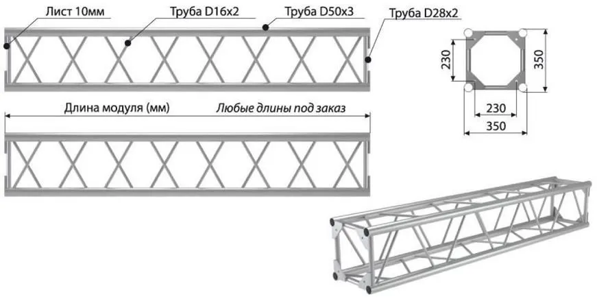 ИМЛАЙТ Q2-1200Прямой модуль квадратной конфигурации длиной (см. артикул) мм, 350x350мм, d50x3 \ d16x2мм. Крепежный размер 230х230мм, М10. Рисунок перемычек круговой.