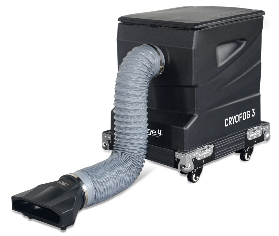 STAGE4 CRYOFOG 3 Генераторы тяжелого стелящегося дыма STAGE4 серии CRYOFOG работают по принципу испарения твердой углекислоты нагретой водой. Рабочий процесс автоматизирован: кипящая вода с помощью насоса в регулируемых объёмах поступает в камеру с твёрд