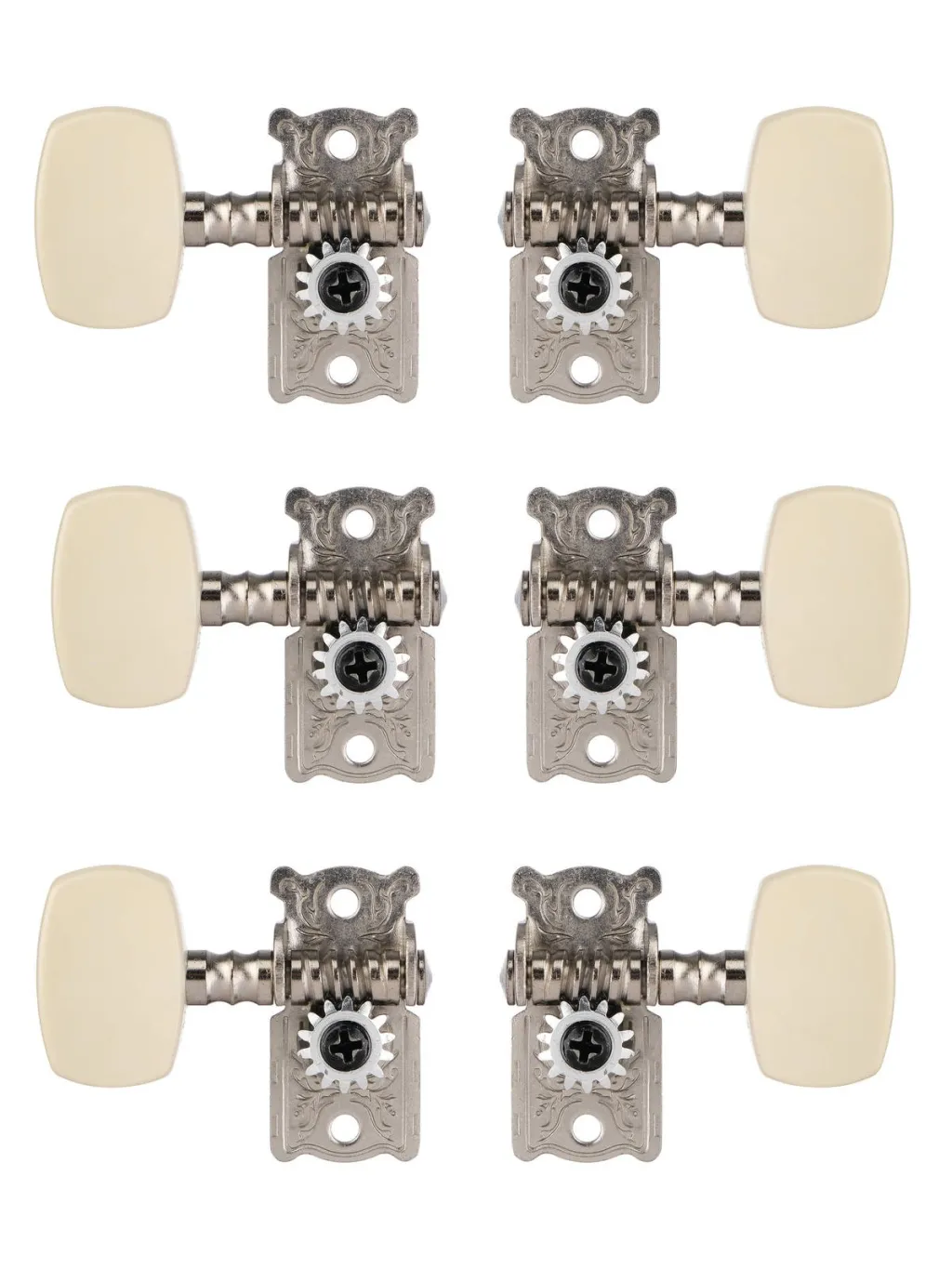 Этот комплект колков предназначен для одиночной колковой механики без втулки, что позволяет гитаристам настроить свои гитары по своему вкусу и потребностям. Колки легко устанавливаются и фиксируются на грифе гитары, что облегчает процесс настройки.
