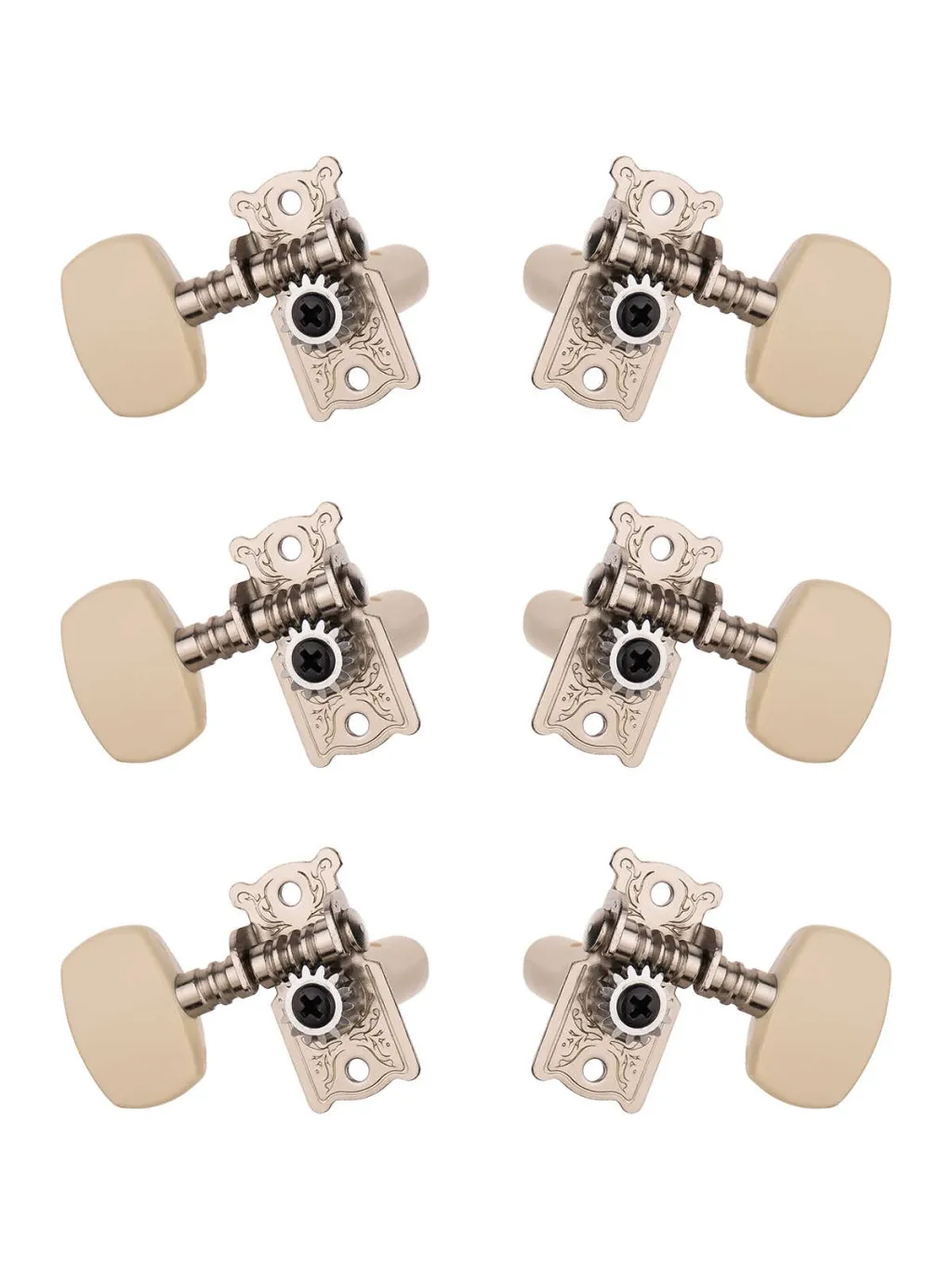 Каждый колковый механизм имеет никелированное покрытие, которое защищает его от коррозии и обеспечивает долговечность. В комплект также входят втулки, которые помогают зафиксировать струну на месте и предотвращают ее смещение.