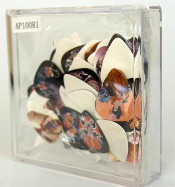 AP-100R1 Коробка медиаторов, толщина 0,46-0,81мм, рисунок с одной стороны, 100шт Alice