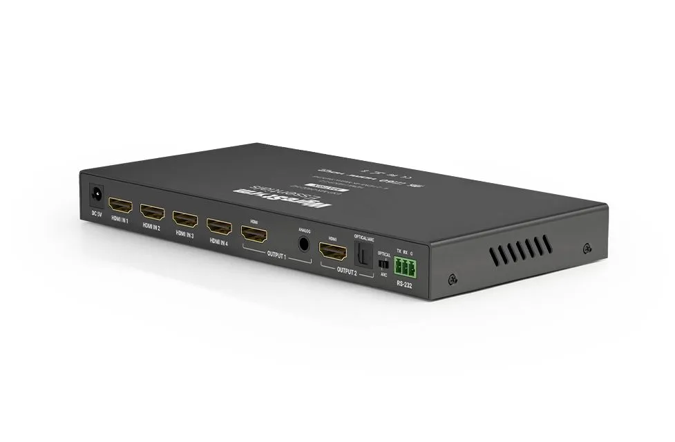 Wyrestorm exp-mx-0402-h2, компакный матричный hdmi коммутатор (4k/60 4:4:4), 4 входа, 2 выхода (масштабируемые), поддержка дэ-эмбендинга аудио, arc, cec.