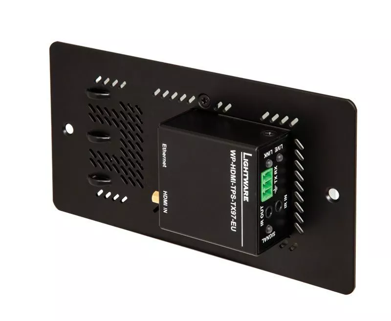 Lightware wp-hdmi-tps-tx97-eu, настенный hdbaset передатчик сигналов hdmi+ethernet+rs-232+двунаправленный ик по одному кабелю витой пары (catx) до 170 м. поддержка hdmi1.4, poe, hdcp, 3d и 4k/uhd. выполнен в формфакторе настенной розетки, совместим с euro