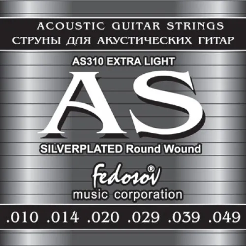 AS310 Silverplated Round Wound Extra Light - это комплект струн для акустической гитары, созданный компанией Fedosov. Он относится к категории струн для акустических гитар (металл).